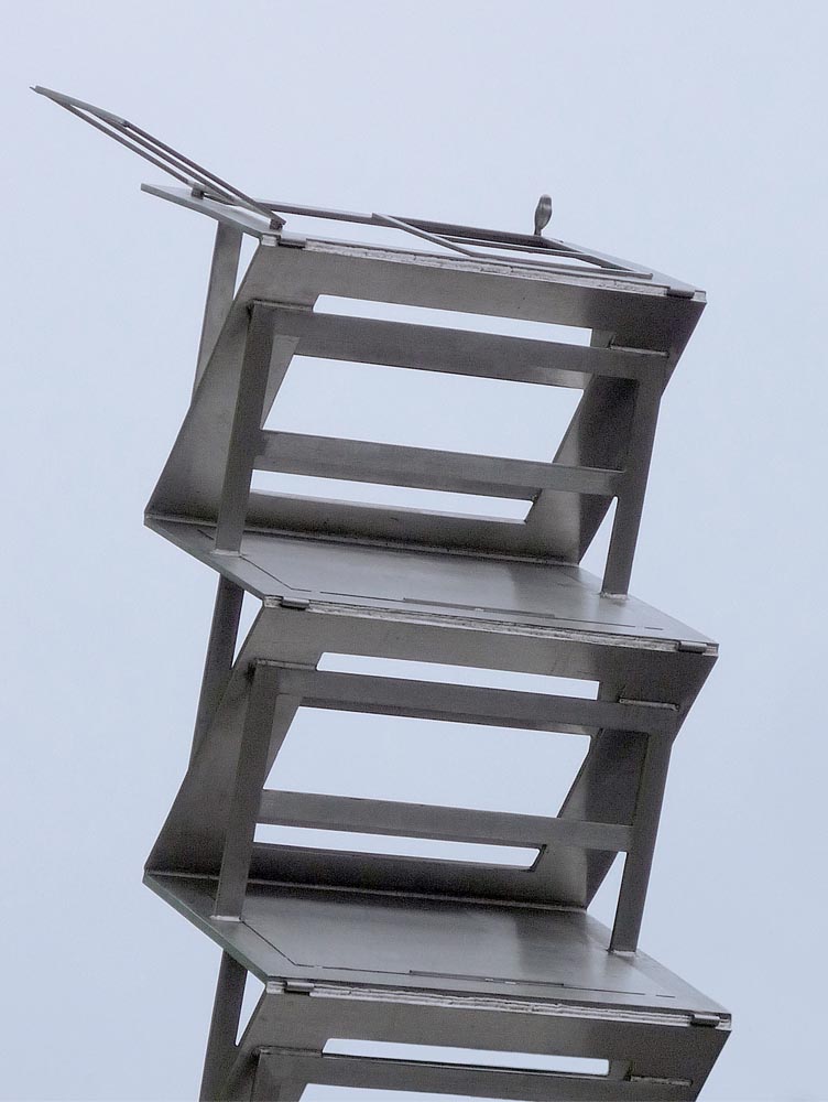 On top of the desk, that fans out vertically like an accordion, is an open window, representing the possibility of change. The window frames the view across the Rhine towards the Siebengebirge that was young Ludwig’s favourite view from the attic of his parental home. A small bird perched on the window frame symbolises a state of intellectual freedom. In contrast, the elongated table legs represent the possibility of failing and refer to the young composer’s difficult personal situation. The small child-sized chair in front of the desk further emphasises this contrast.