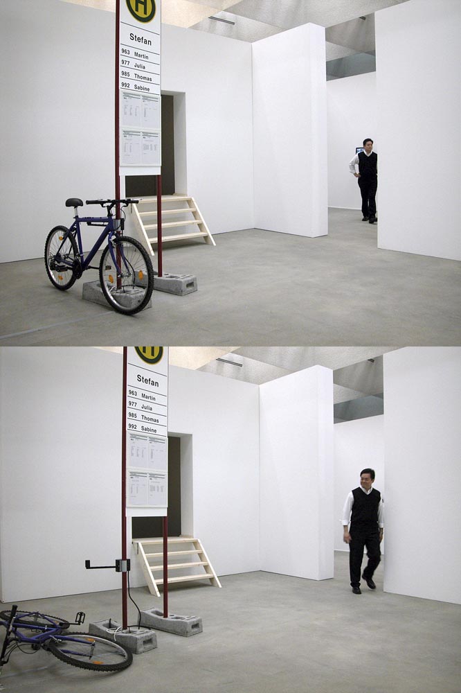 bike, motion detector, metal, acrylic paint